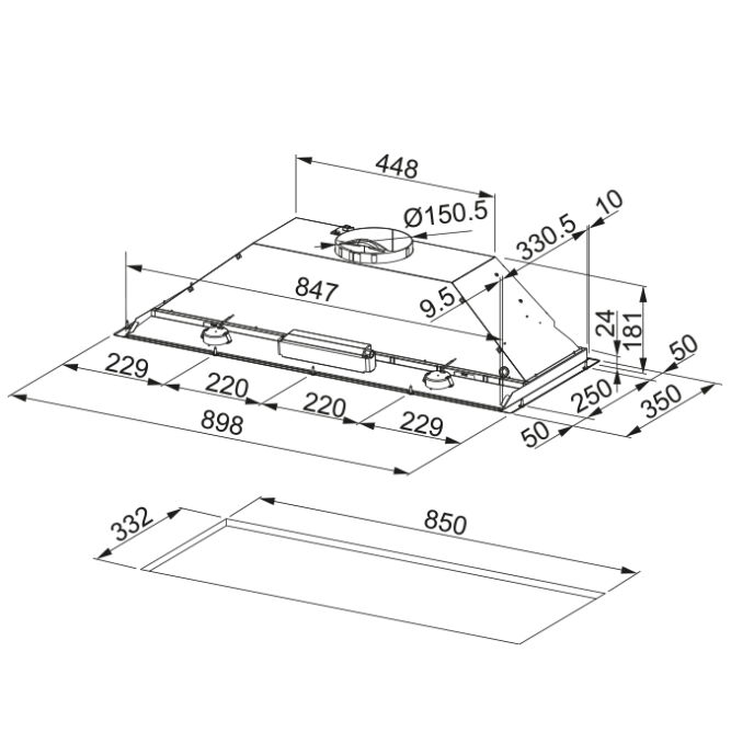 Tek motorlu sistem ve 3 farklı hız seçeneği ile yemek pişirme sırasında oluşan buhar ve kokular mutfaktan hızlı şekilde uzaklaştırılır. 120 mm boru çıkışı ile standart mutfak bacalarına uyumludur.